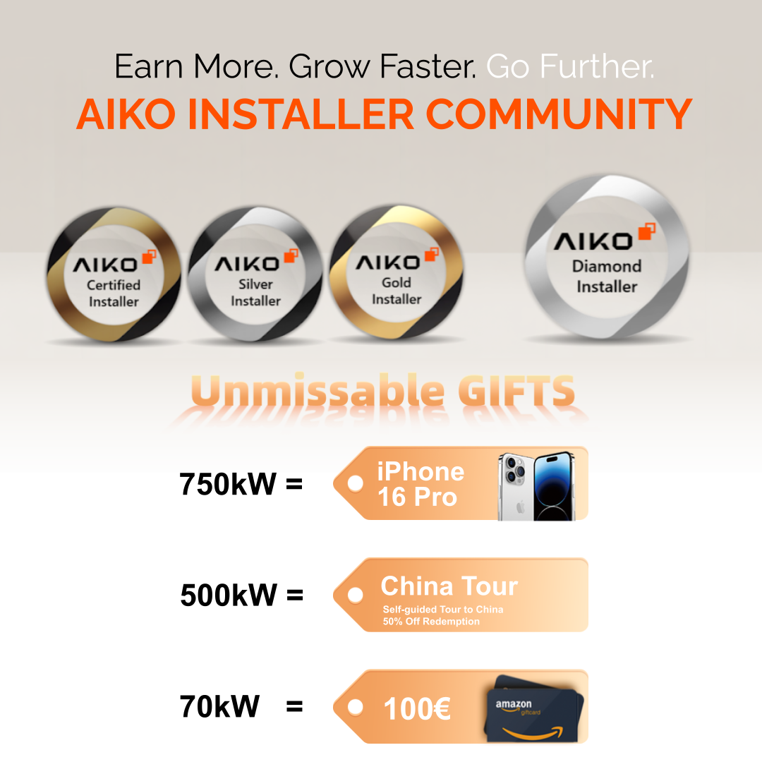 As a special thank you to every installer who completes the training with Marc at Triple Solar, we're offering 100 AIKO installer community points!